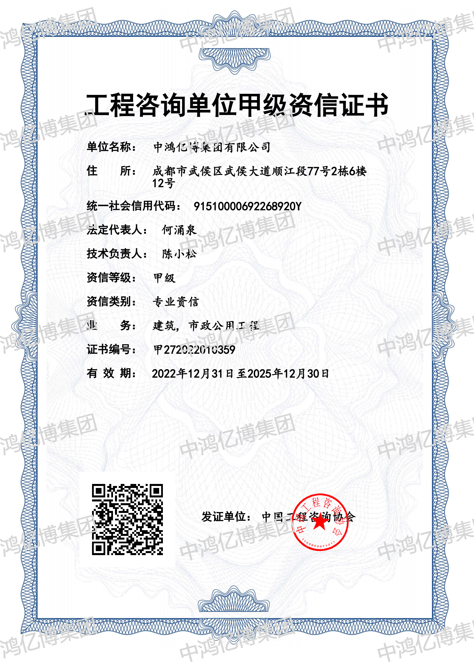 中鸿亿博集团有限公司成立于2009年8月,注册资金1亿元,是一家集工程勘察、工程设计、工程监理、项目管理、工程造价、招标代理、工程咨询、工程测绘、人防工程、检测鉴定及 BIM 于一体的能为建设工程全生命周期提供服务的综合性管理公司。