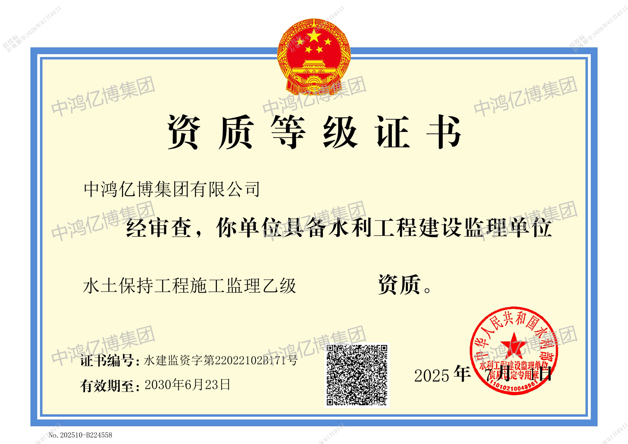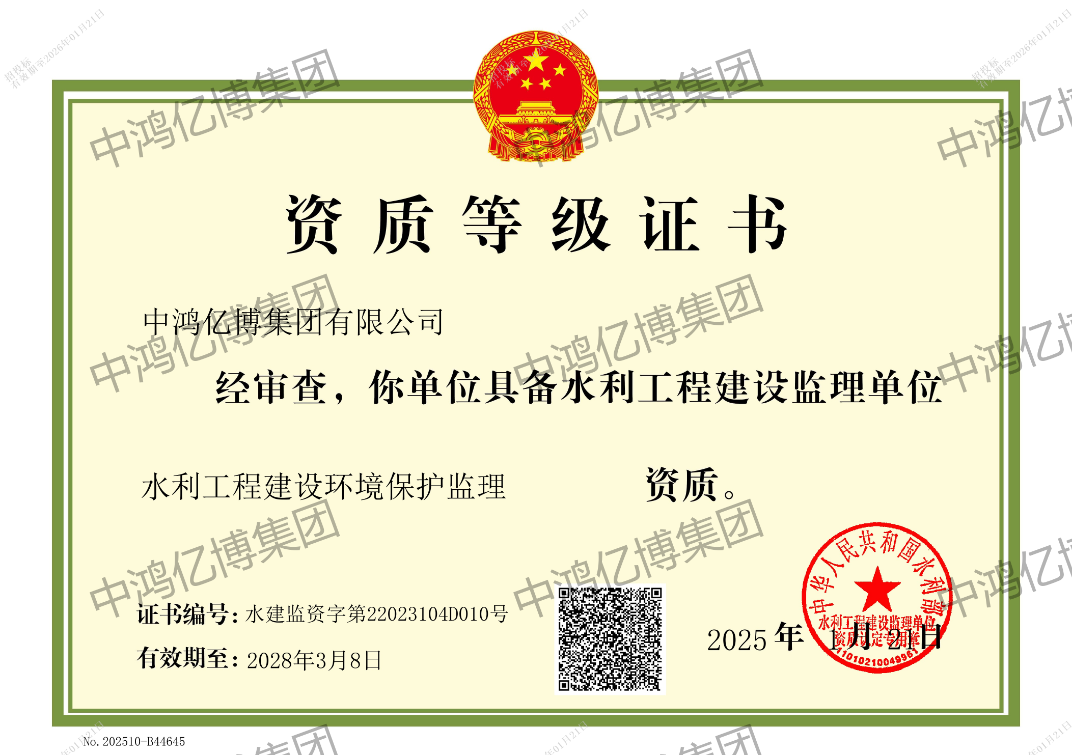 2014年11月取得住建部水利水电工程、农林工程、电力工程监理甲级资质