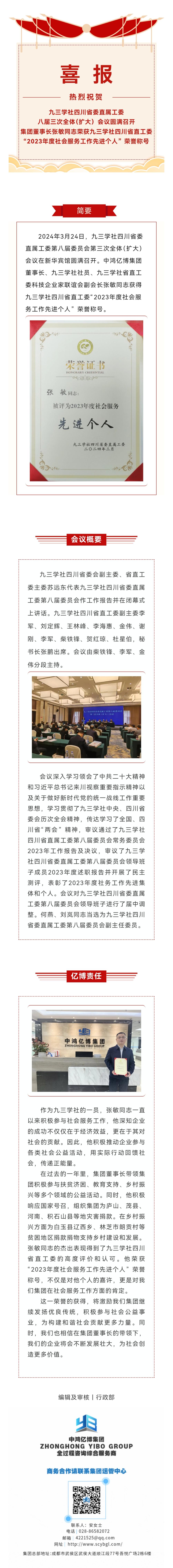 亿博动态丨热烈祝贺集团董事长荣获九三学社省直工委 “2023年度社会服务工作先进个人”荣誉称号
