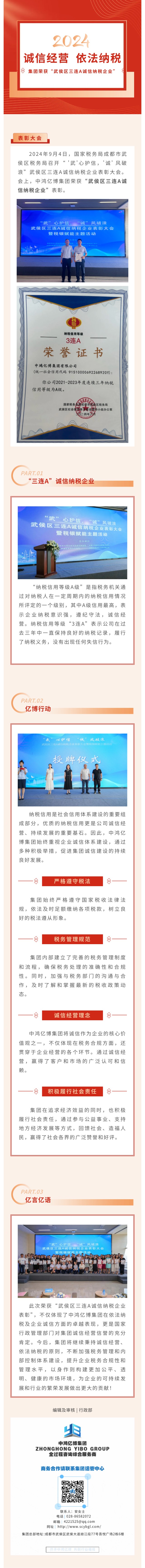 亿博动态 | 喜报!祝贺集团荣获“武侯区三连A诚信纳税企业”荣誉称号