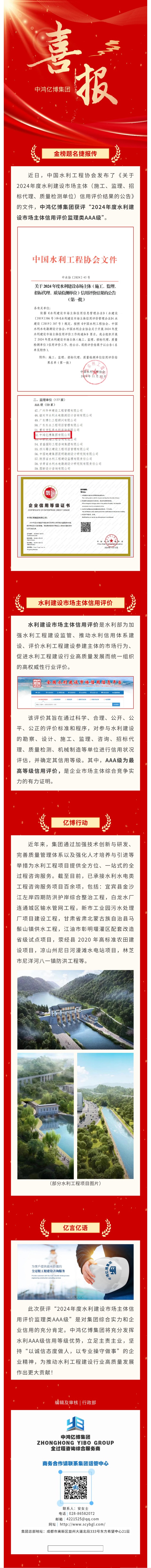 亿博动态 | 喜报!祝贺集团获评“2024年度水利建设市场主体信用评价监理类AAA级”