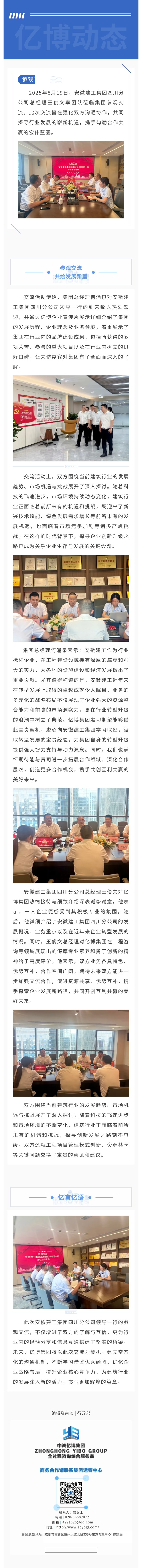 亿博动态 | 安徽建工集团四川分公司领导一行莅临集团参观交流