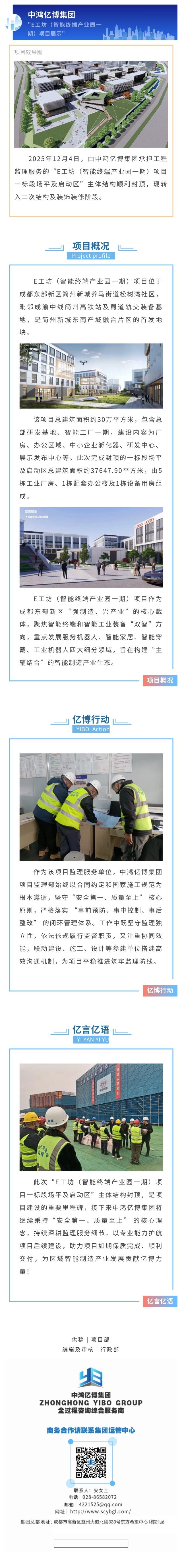 祝贺集团监理的“E工坊(智能终端产业园一期)项目一标段场平及启动区”主体结构顺利封顶