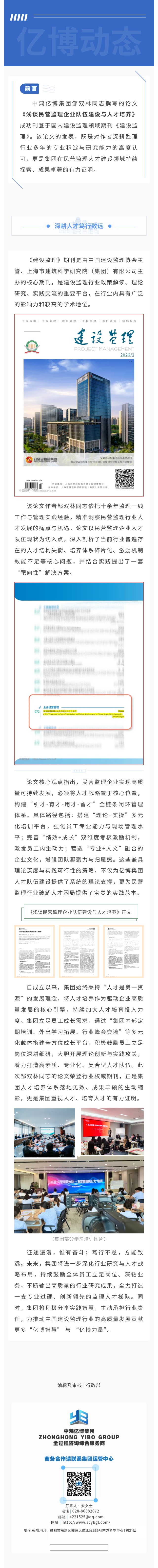 集团《浅谈民营监理企业队伍建设与人才培养》论文荣登《建设监理》期刊