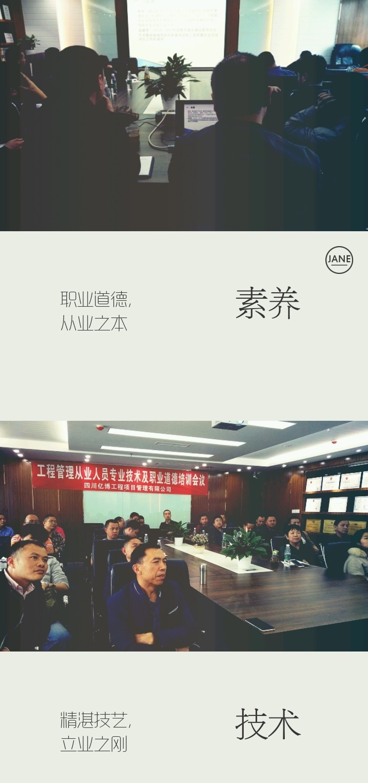 四川亿博工程项目管理有限公司于2017年4月28日下午在总公司召开“工程管理从业人员专业技术及职业道德培训会议”。旨在提高个人专业技术、强调个人职业道德、强化个人执业资格。