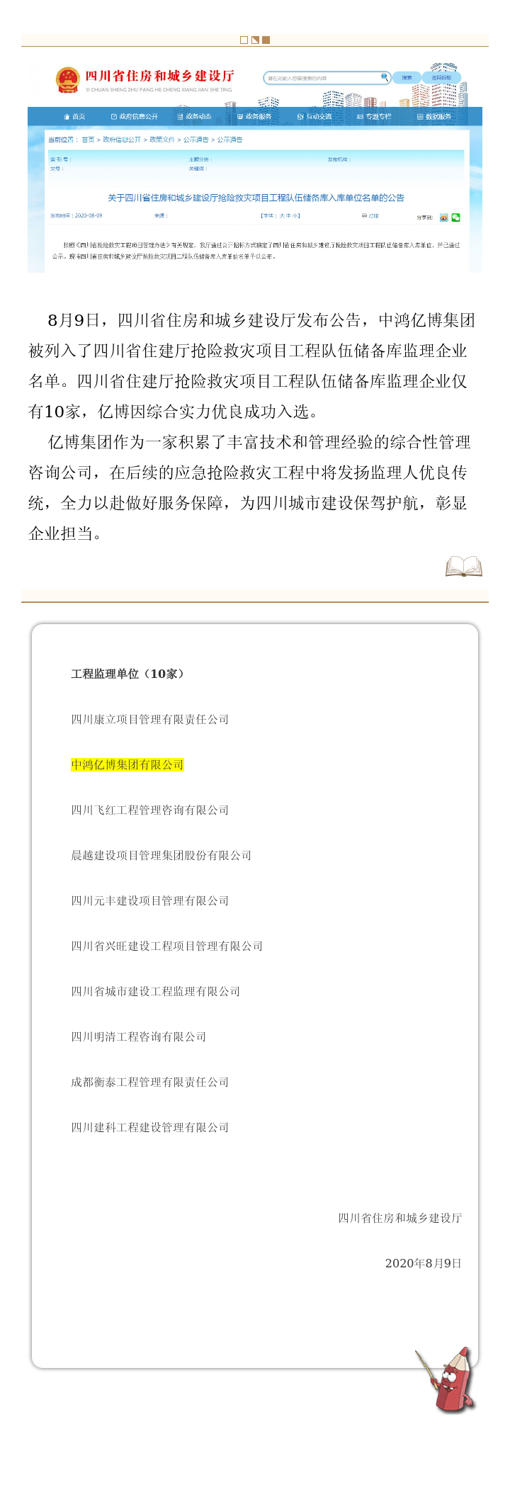 集团列入省住建厅抢险救灾项目工程队伍储备库 彰显亿博责任与担当