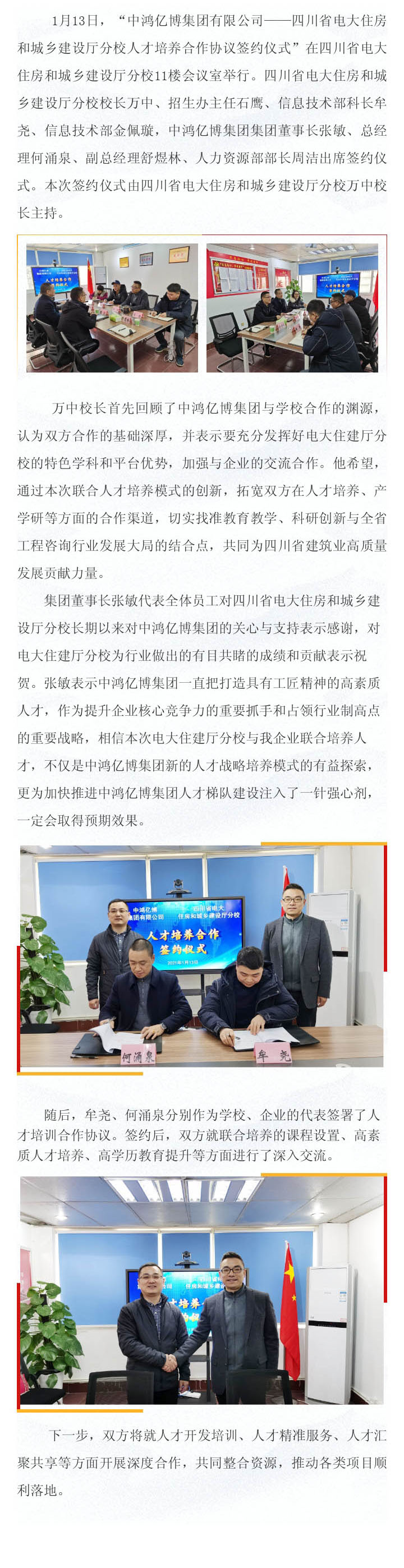 集团与电大住建厅分校签订校企人才培养合作协议