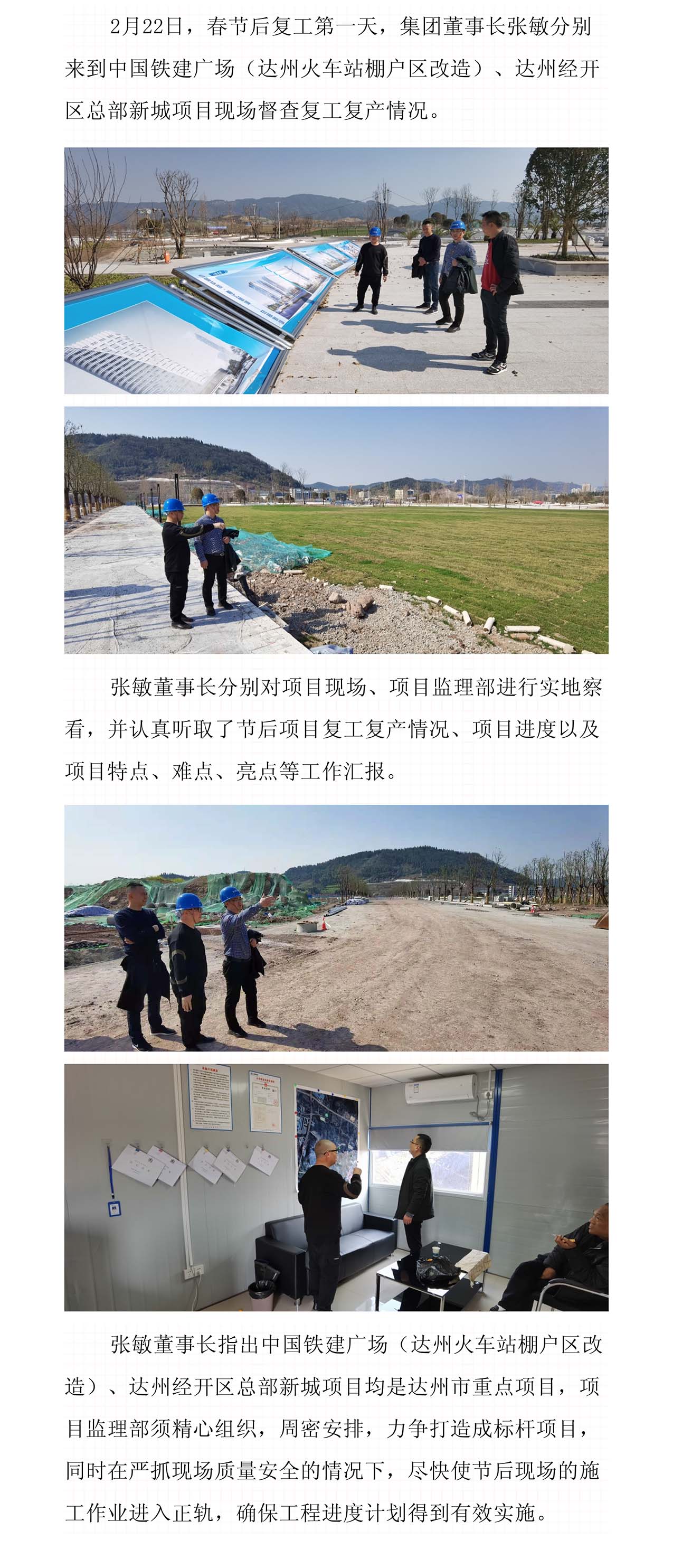 集团董事长督查节后项目复工复产工作