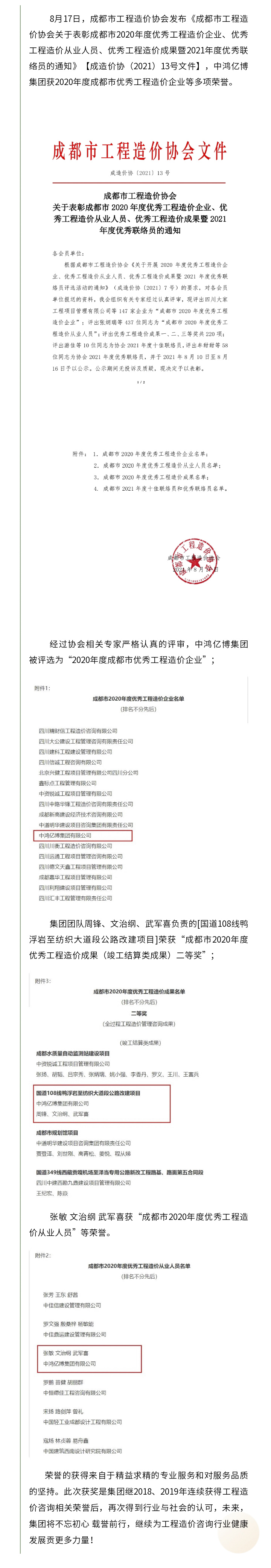 中鸿亿博集团获工程造价咨询领域多项荣誉