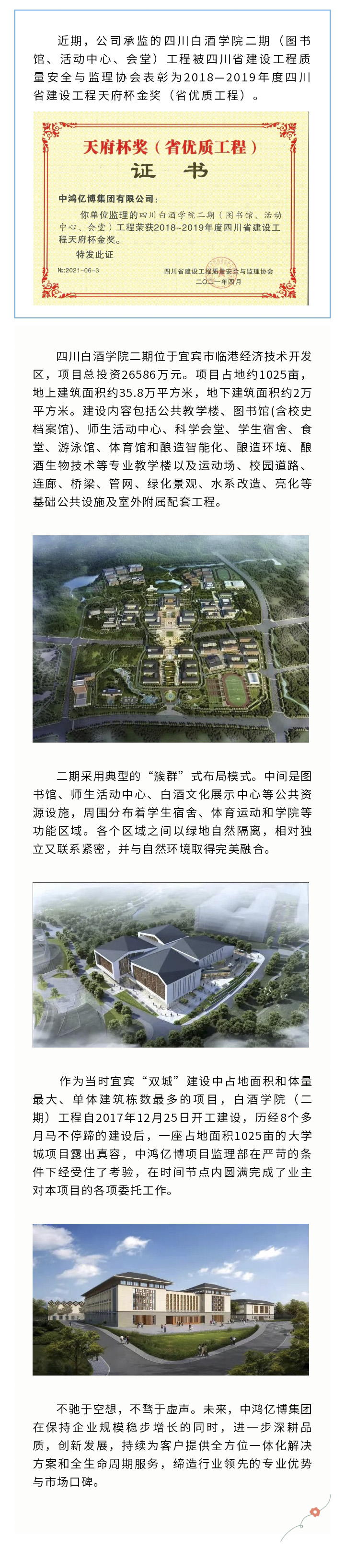 【荣誉见证实力】集团承监的四川白酒学院二期荣获天府杯金奖