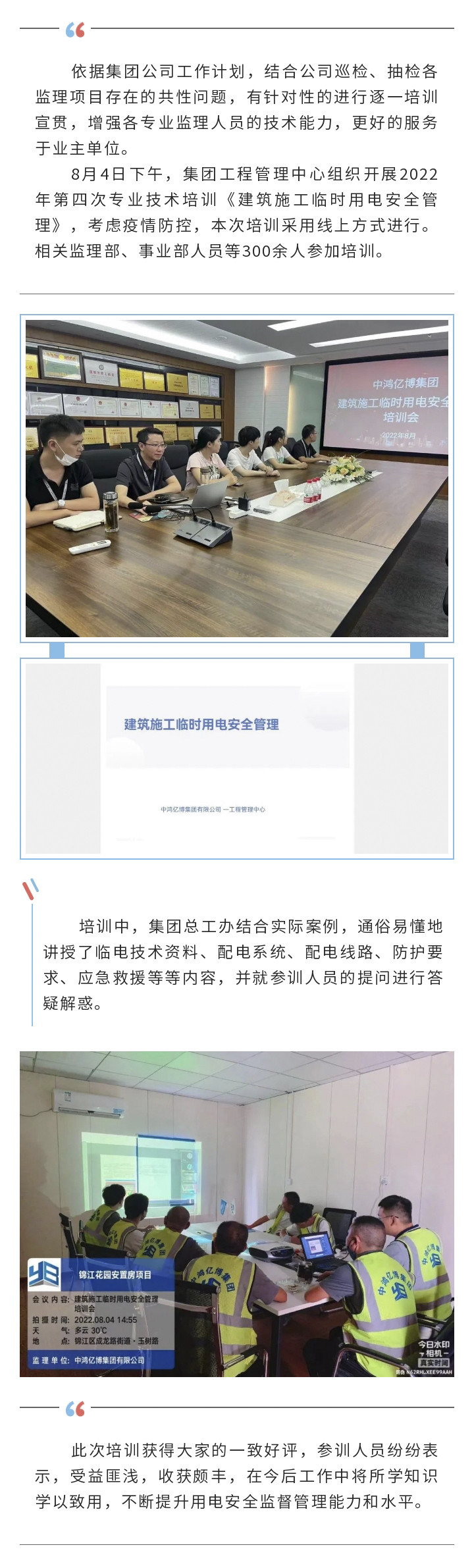 集团开展建筑施工临时用电安全管理培训