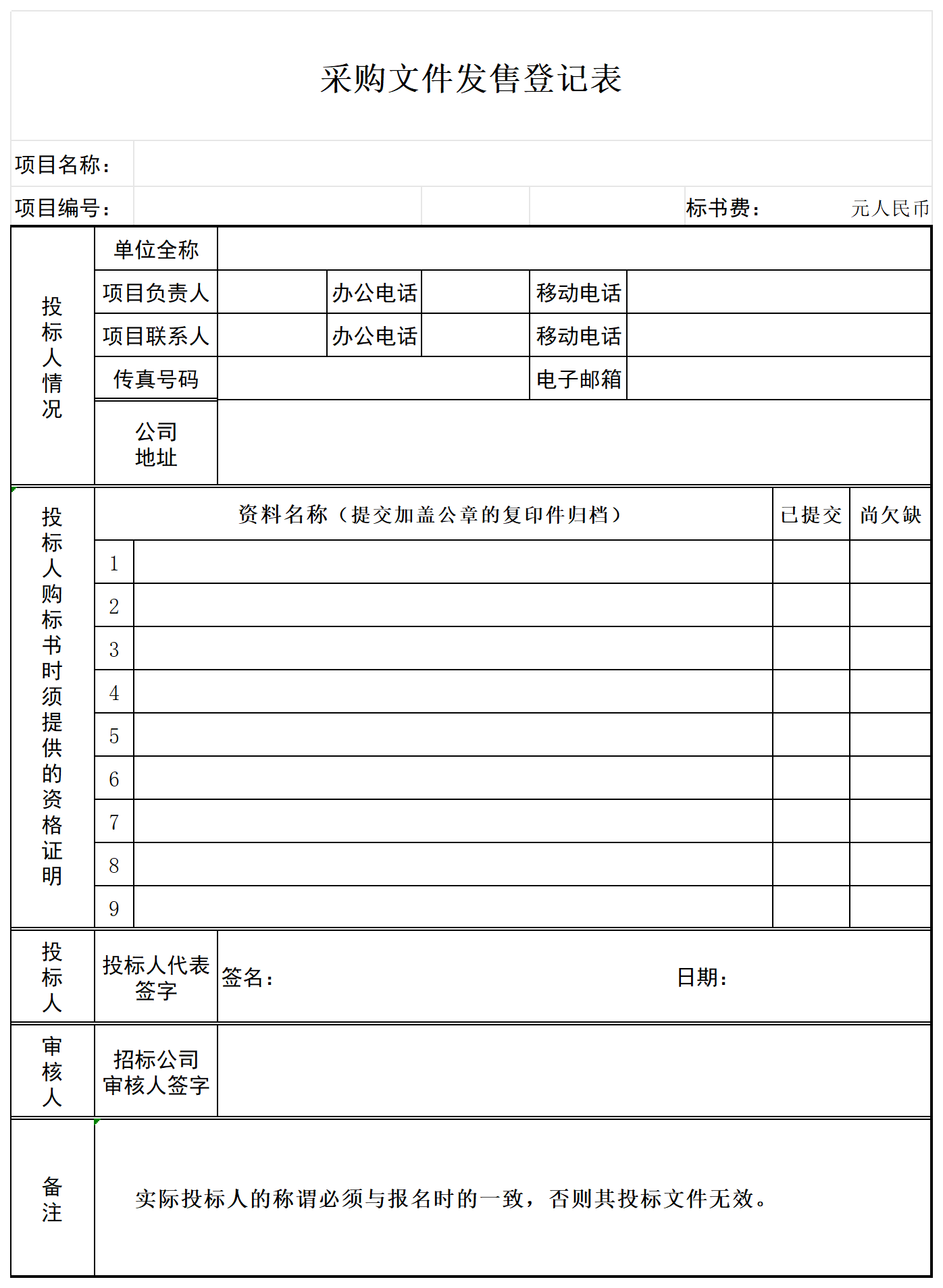 获取招标文件的方式:自行前往购买。(购买招标文件需递交以下资料并加盖公章)