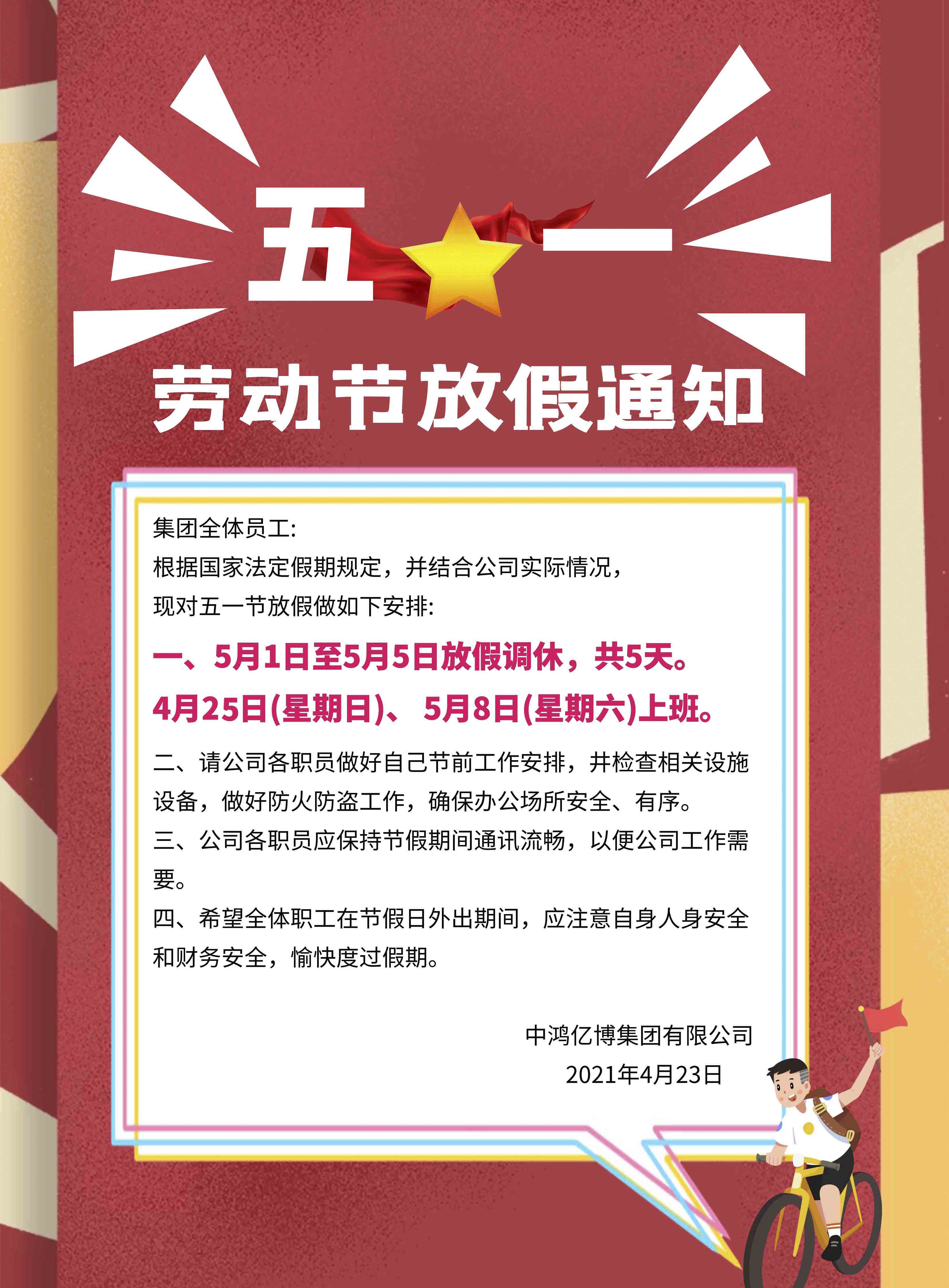 关于五一劳动节放假安排的通知