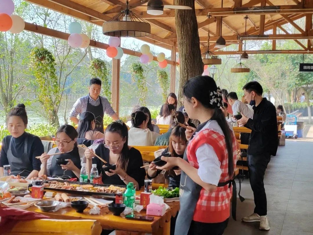 公司为全体员工准备了自助烧烤,选址在河边,让大家能在春季微风中享用午餐。用餐时,各部门氛围融洽,在一片欢声笑语中各诉心事。