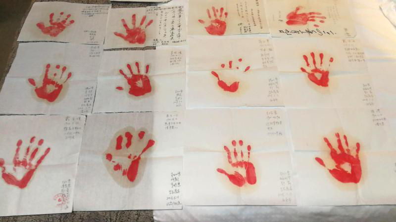 这100名抗战老兵的手印,是从600余份参加过抗日战争的老兵手印中精选出来的,其中包括参加过淞沪会战的抗战老兵及蒋介石专机驾驶员等。
