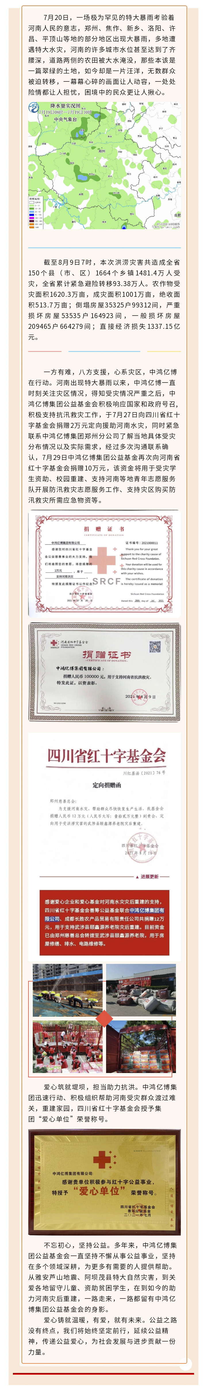 【爱心凝聚力量 希望成就未来】中鸿亿博集团紧急驰援河南灾后重建